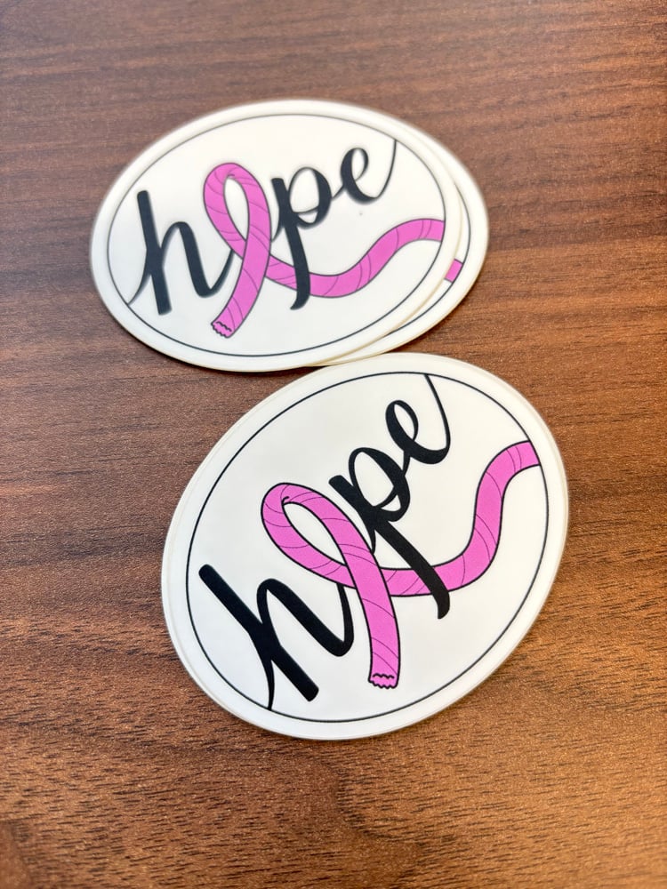HOPE- Breast Cancer Awareness Pink Yarn Ribbon Sticker